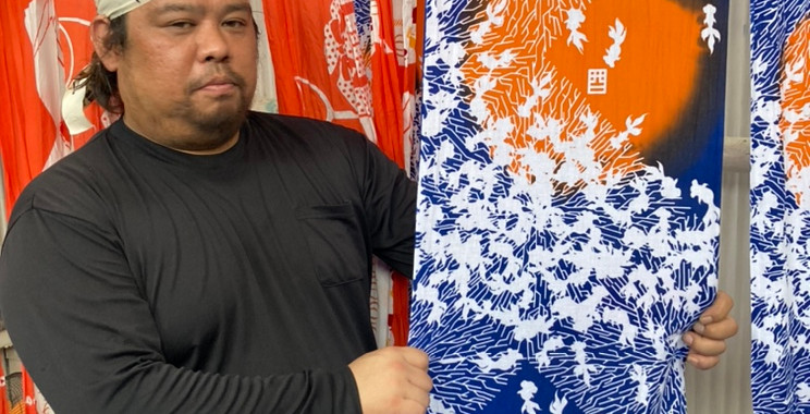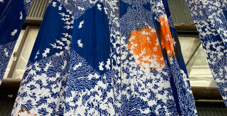 Pour Ici & Là-bas, Antoine nous permet de transposer un motif d'inspiration japonaise de poissons kingyo et coraux qu'il a déjà pu utiliser pour des Uchiwa (éventails japonais) réalisés pour un de nos projets ou encore pour de sublimes sérigraphies.