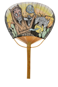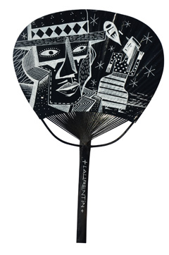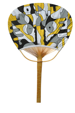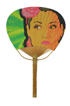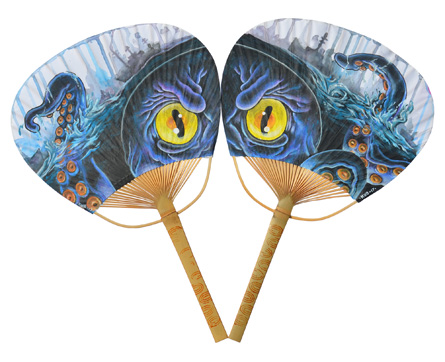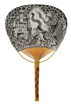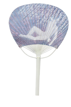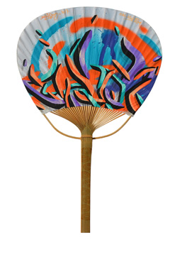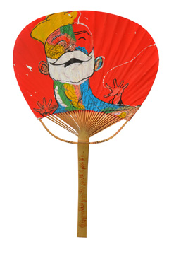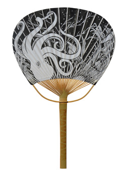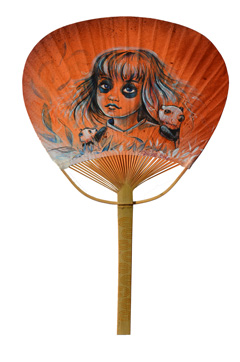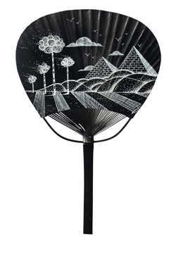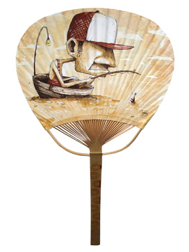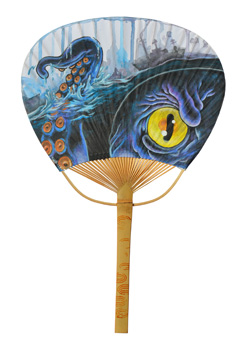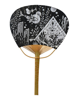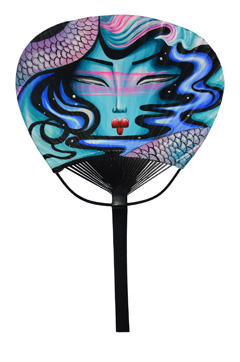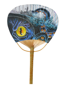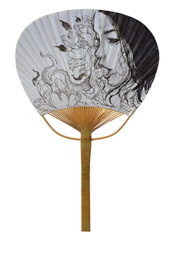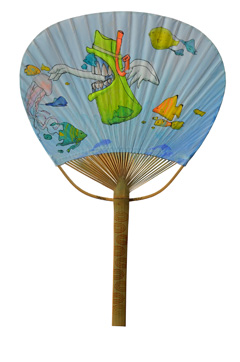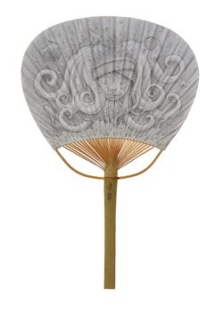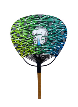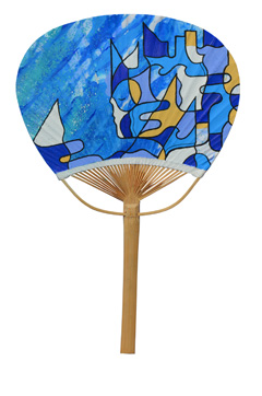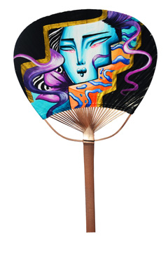 Un Uchiwa est un éventail japonais non pliable en bamboo et papier. Depuis des siècles, l'Uchiwa-e, peinture sur uchiwa existe au Japon et nous vous présentons ici des versions françaises dont celle ci-dessous, réalisée par l'artiste Russ.