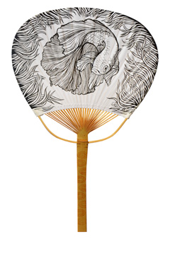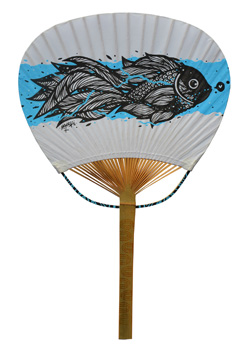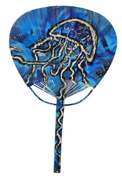 Depuis la fin du 17ème siècle l'uchiwa-e, peinture sur Uchiwa, offre à cet éventail un caractère artistique indéniable. Aimant particulièrement l'objet, j'ai développé dans cette idée une vente aux enchères caritative à l'Aquarium de Paris en 2017 avec Emmanuel Layan. Tous les fonds récoltés lors de cette vente qui a été un vrai succès ont été reversés à l'association de protection des océans, BLOOM. Vous pouvez découvrir ci-dessous quelques-uns des uchiwas réalisés par les artistes dont la voici la liste. Cette vente aux enchères succédait à une petite exposition à Japan Blue Paris.